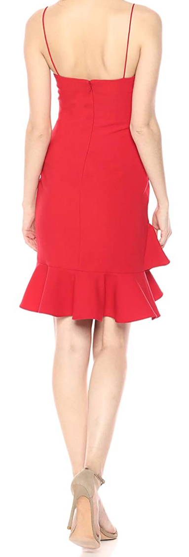Verona spaghetti strap stretch ruffle hem scarlet red