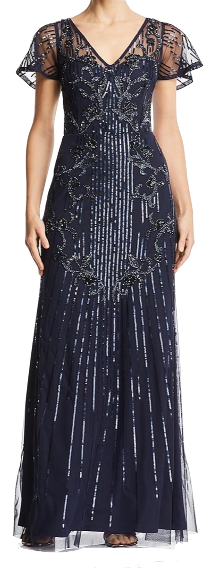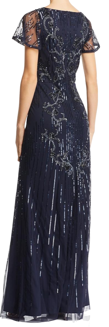 Sequined flutter sleeve mesh v-neck beaded twilight