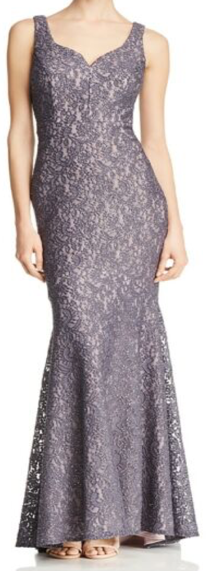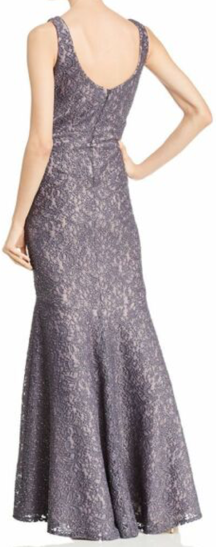 Sleeveless v neck full length lace shimmer/glitter evening dress charcoal gray