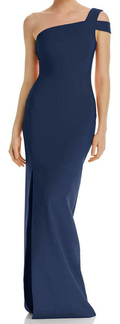 Maxson Blue One-Shoulder Split Hem Gown blue