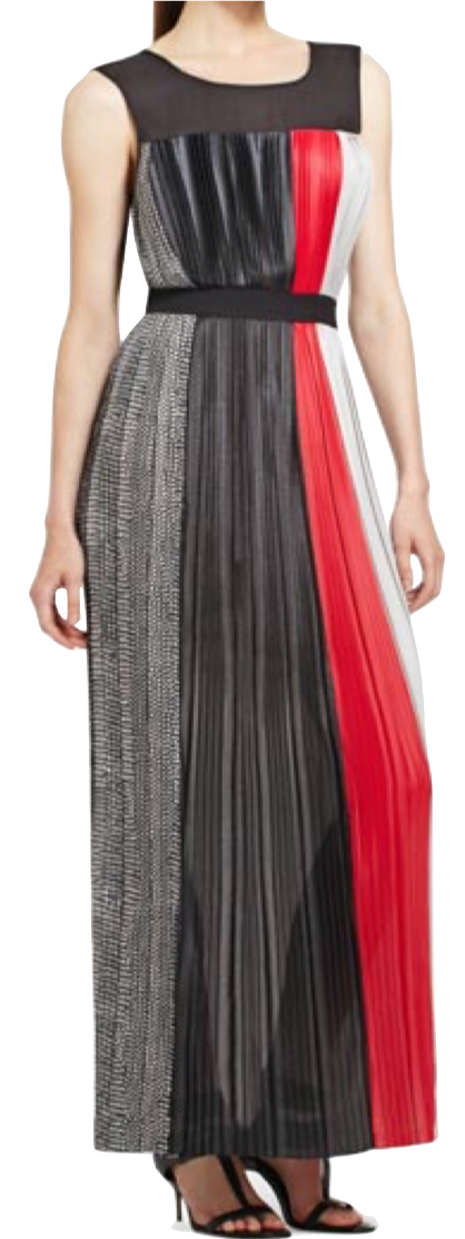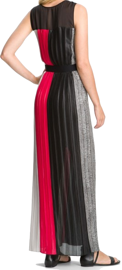 Franca color-blocked long pleated sleeveless maxi multi color black combo