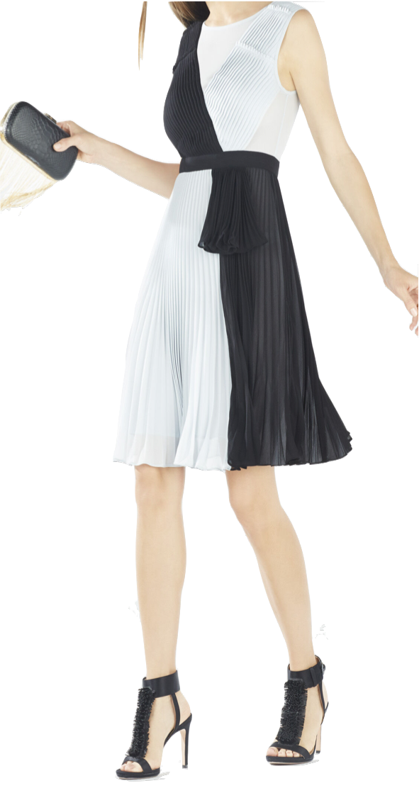 Bailie alternating colorblock pleated sleeveless tassel haze black
