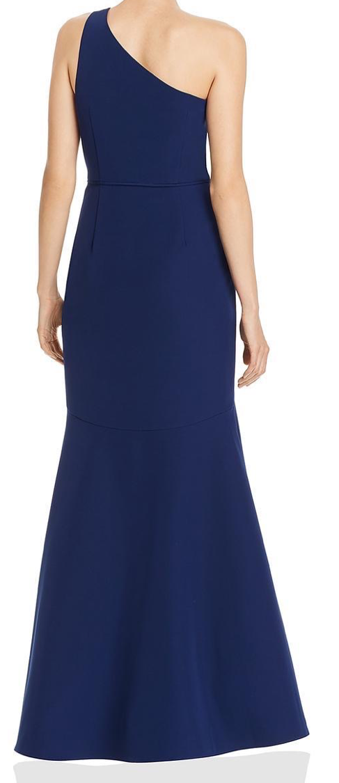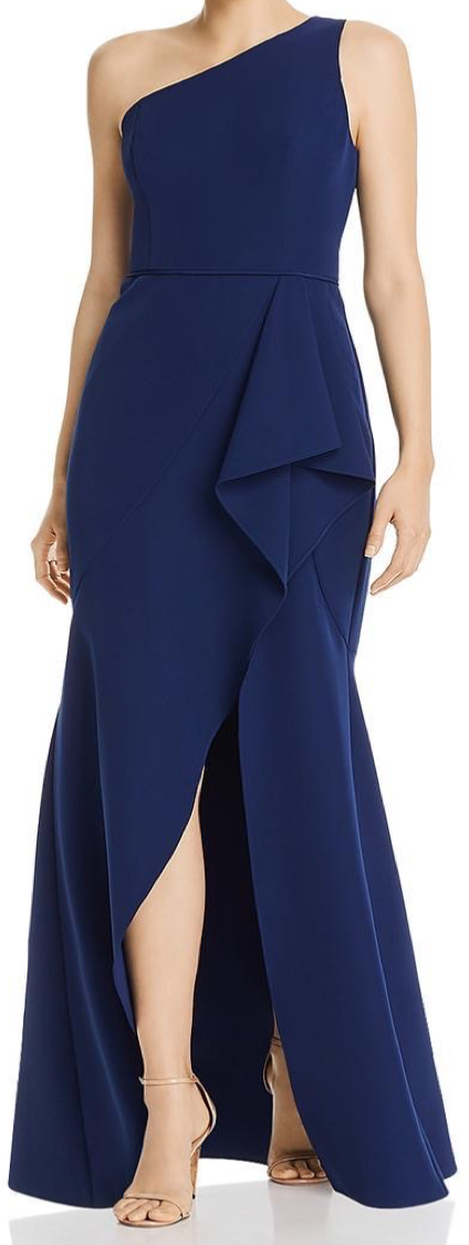 One shoulder ruffled navy formal dress